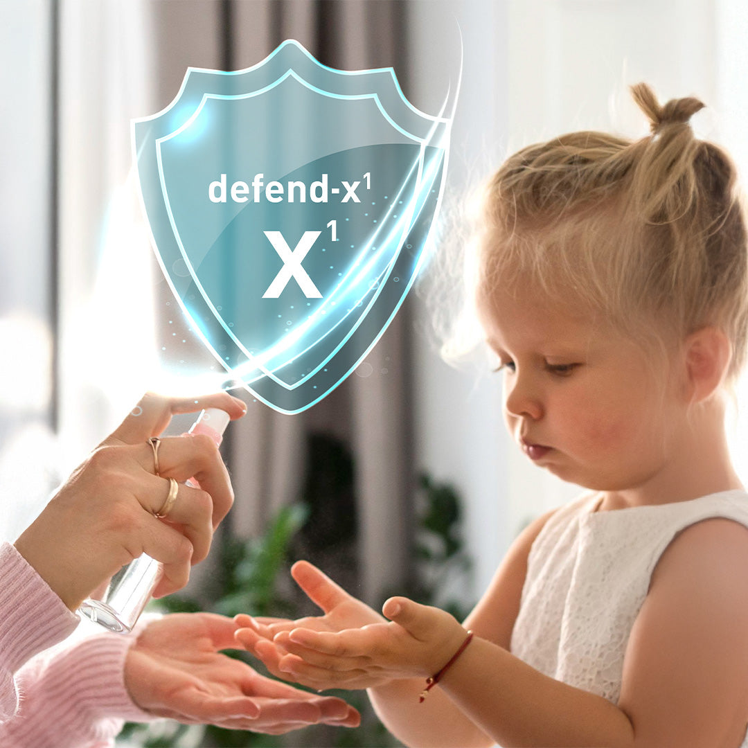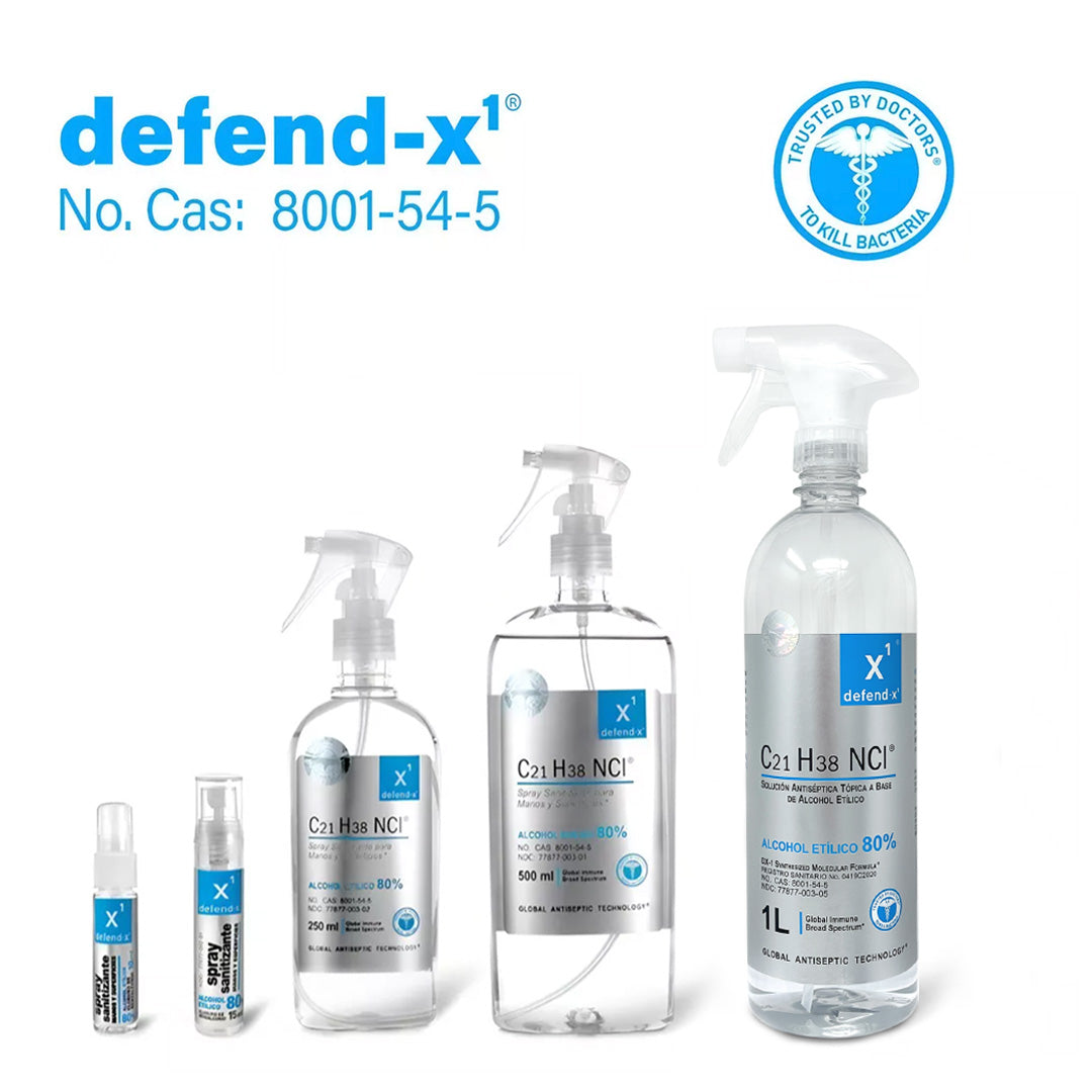 Defend-x1® Es un poderoso Agente Antibacteriano, formulado para usarse en el cuerpo y en las superficies, elimina el 99% de las bacterias y de los virus. No requiere enjuagar, no deja sensación pegajosa y seca rápido.