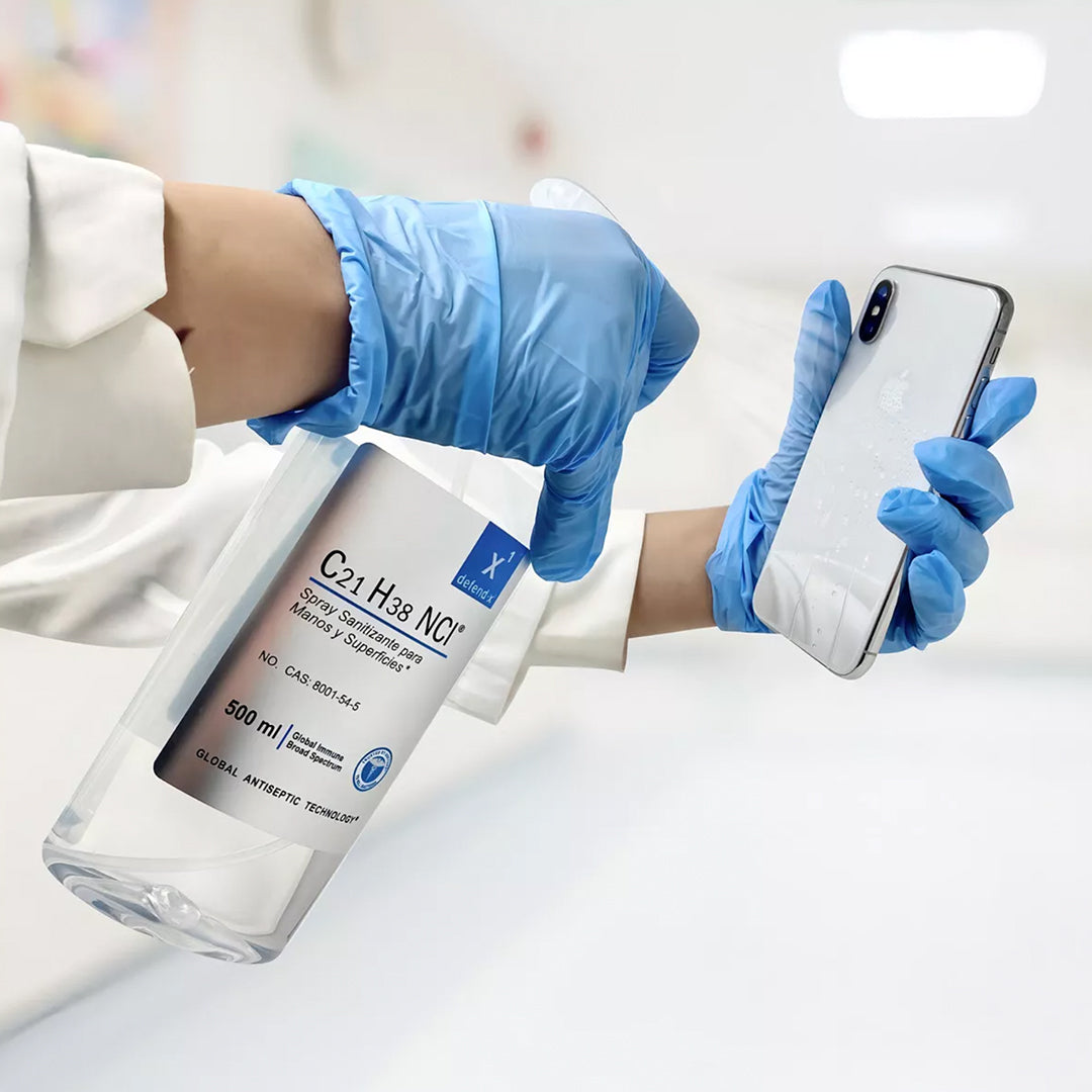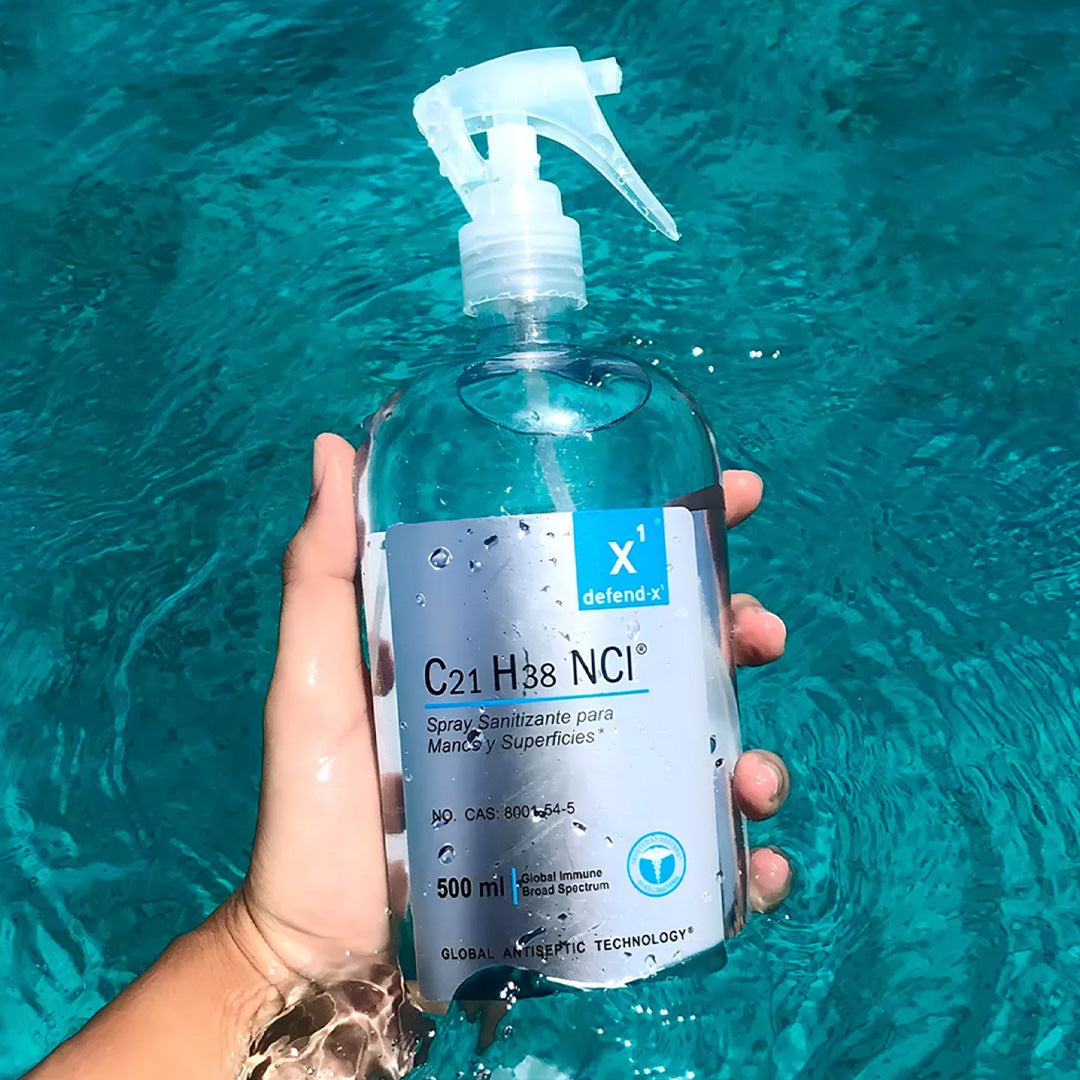 Defend-x1® Es un poderoso Agente Antibacteriano, formulado para usarse en el cuerpo y en las superficies, elimina el 99% de las bacterias y de los virus. No requiere enjuagar, no deja sensación pegajosa y seca rápido.